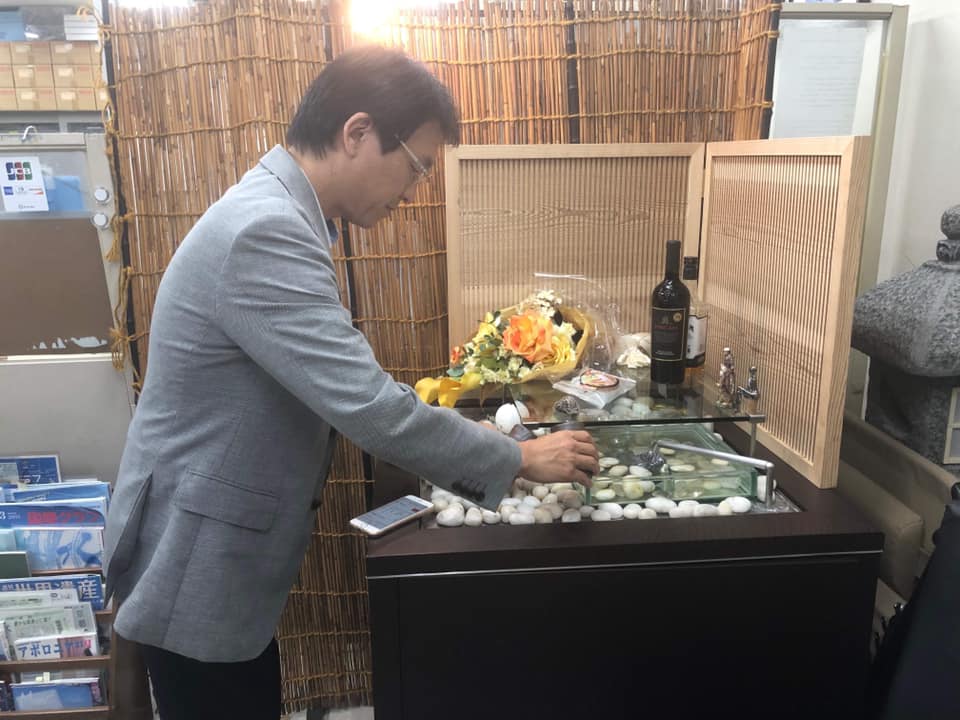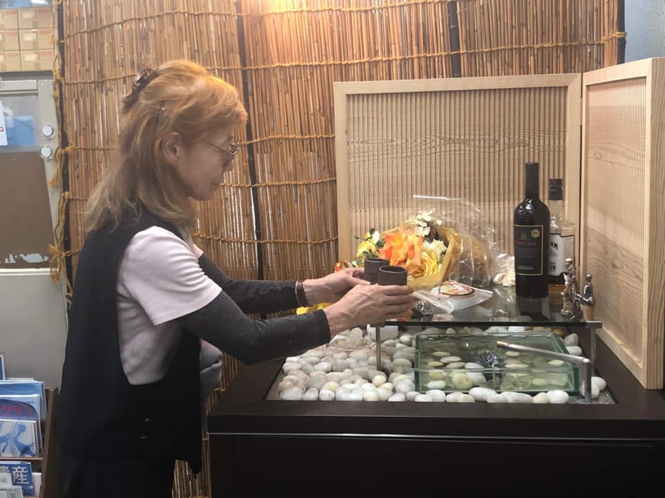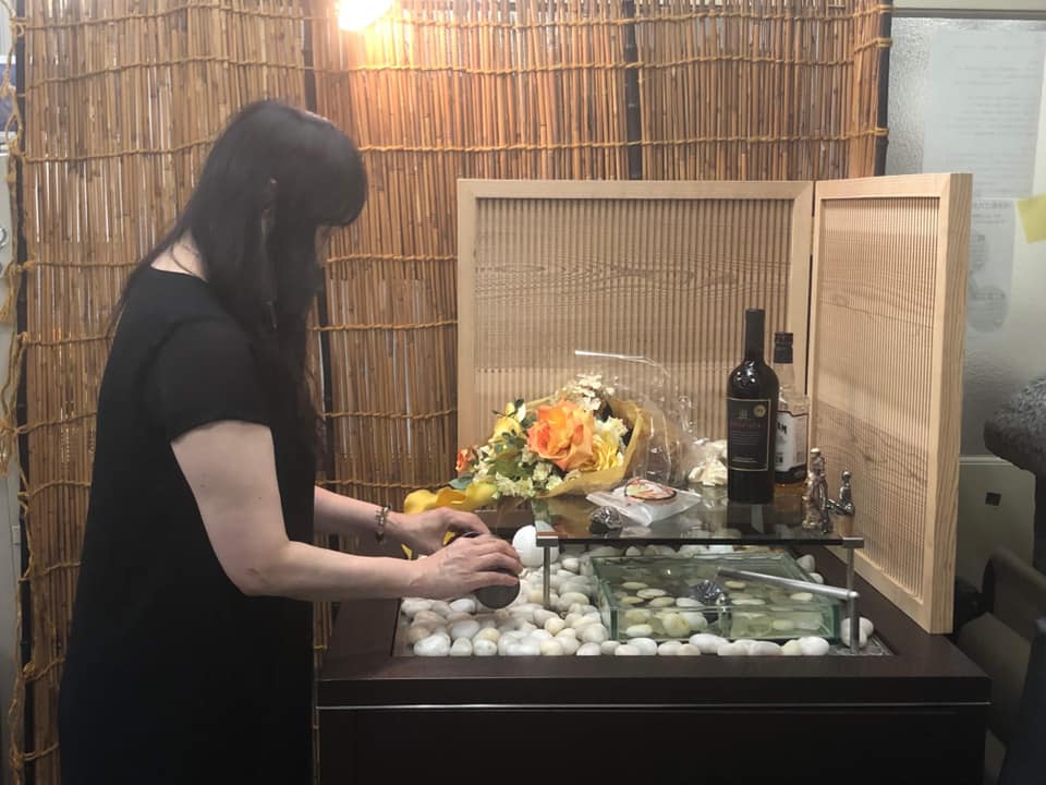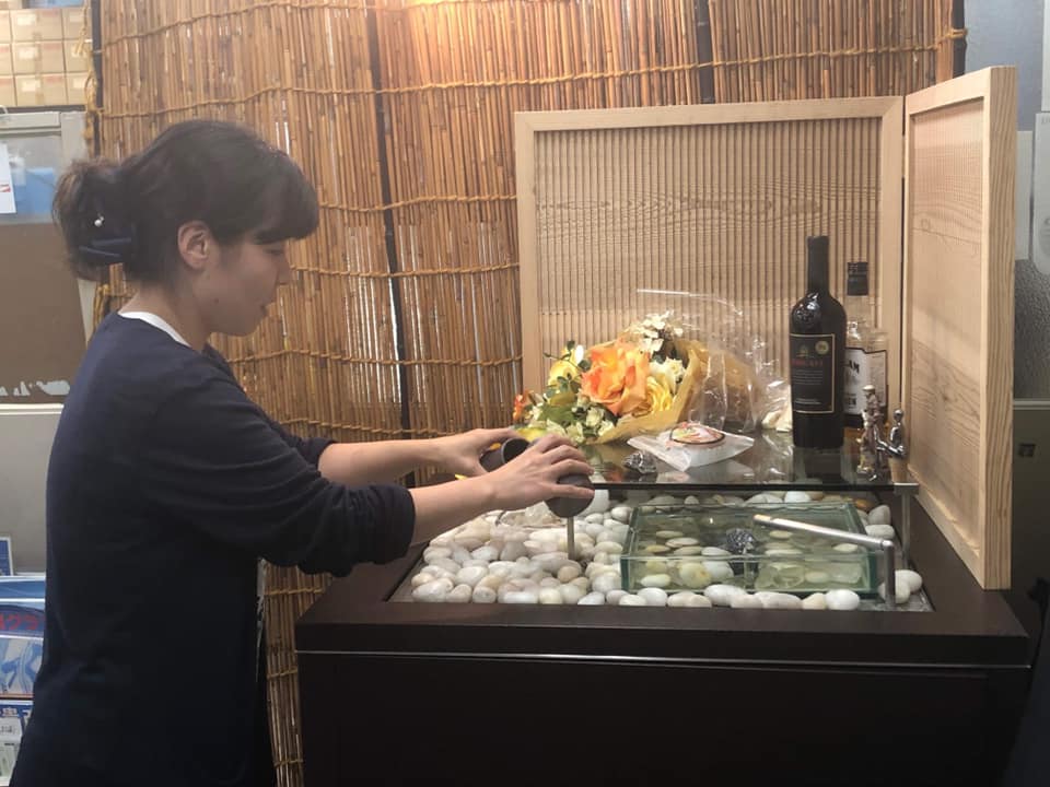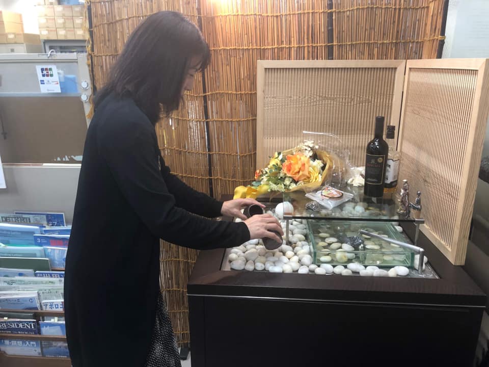 山田さんが大嶺山からお水送りをしていただき、私が瓜割の滝からいただいてきたお水とで、